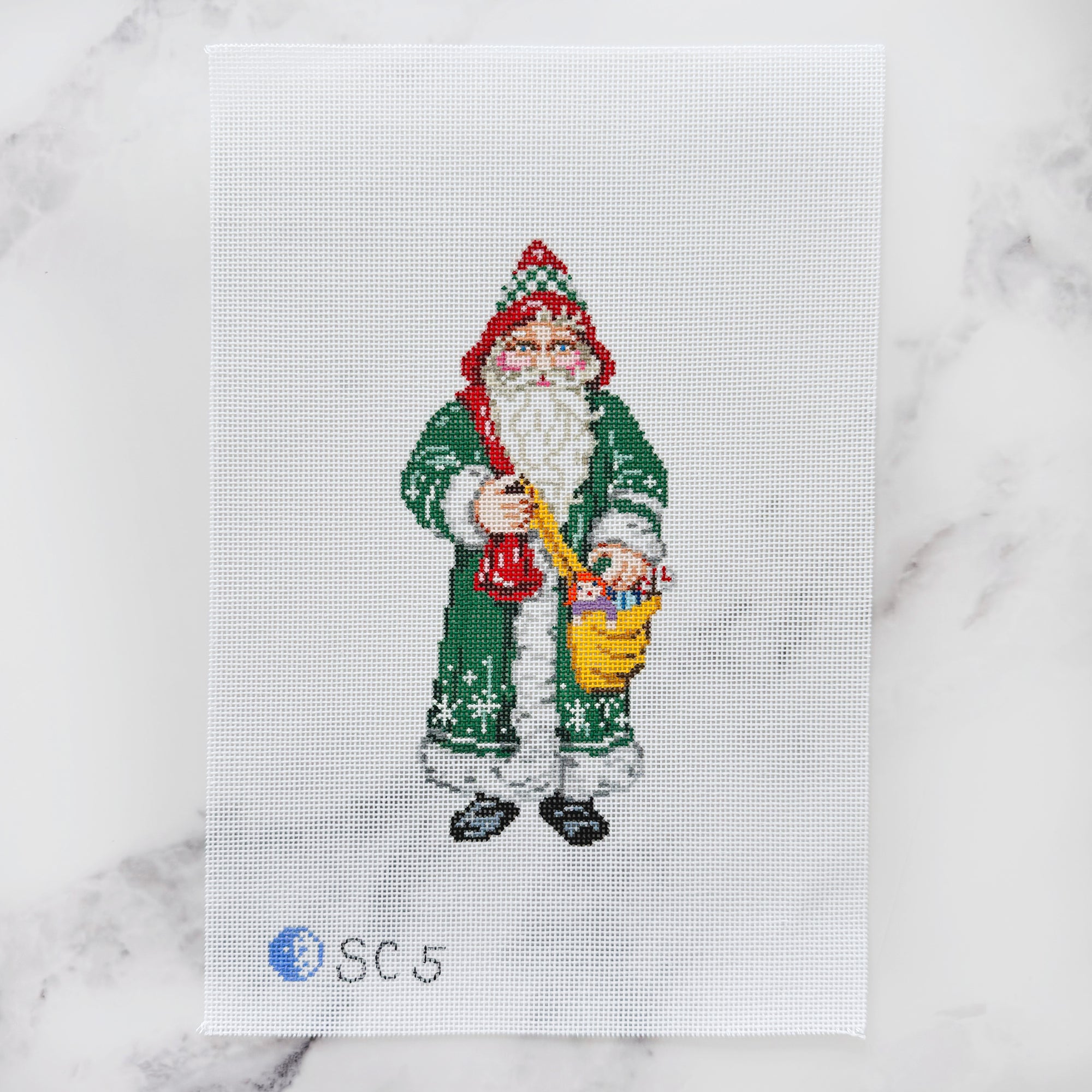 Each kit comes with a hand-painted needlepoint canvas in the design you choose. The edges are sewn in bias tape to prevent fraying while you stitch.