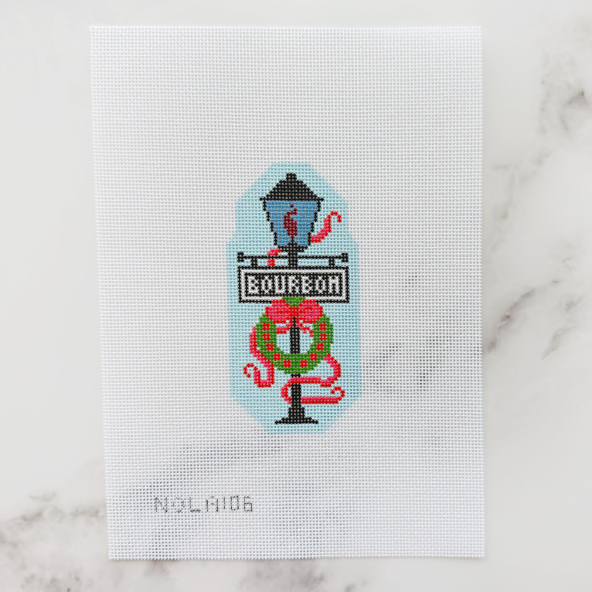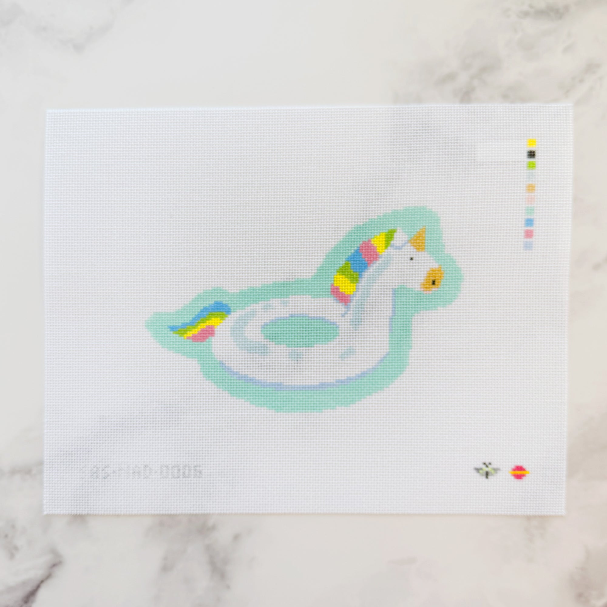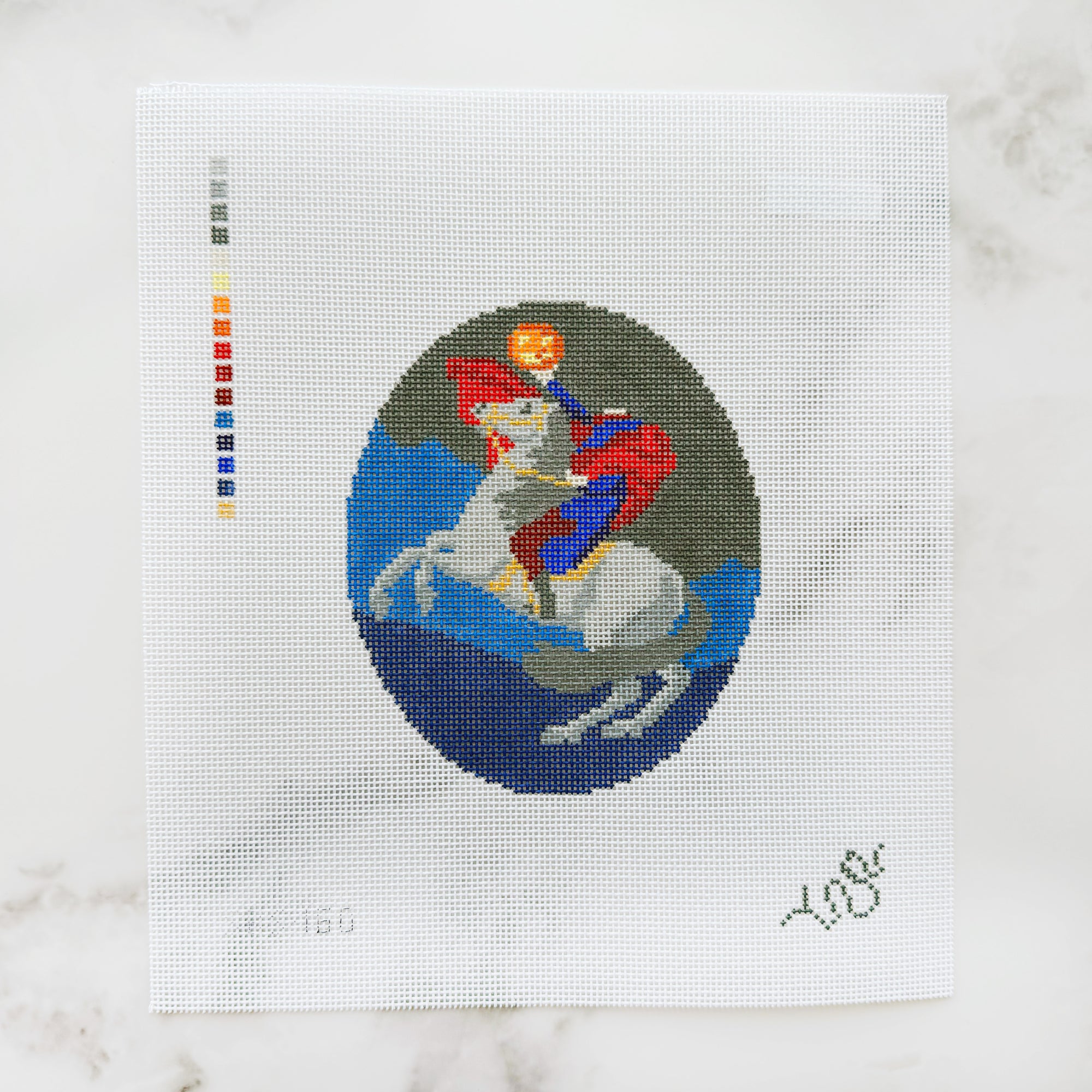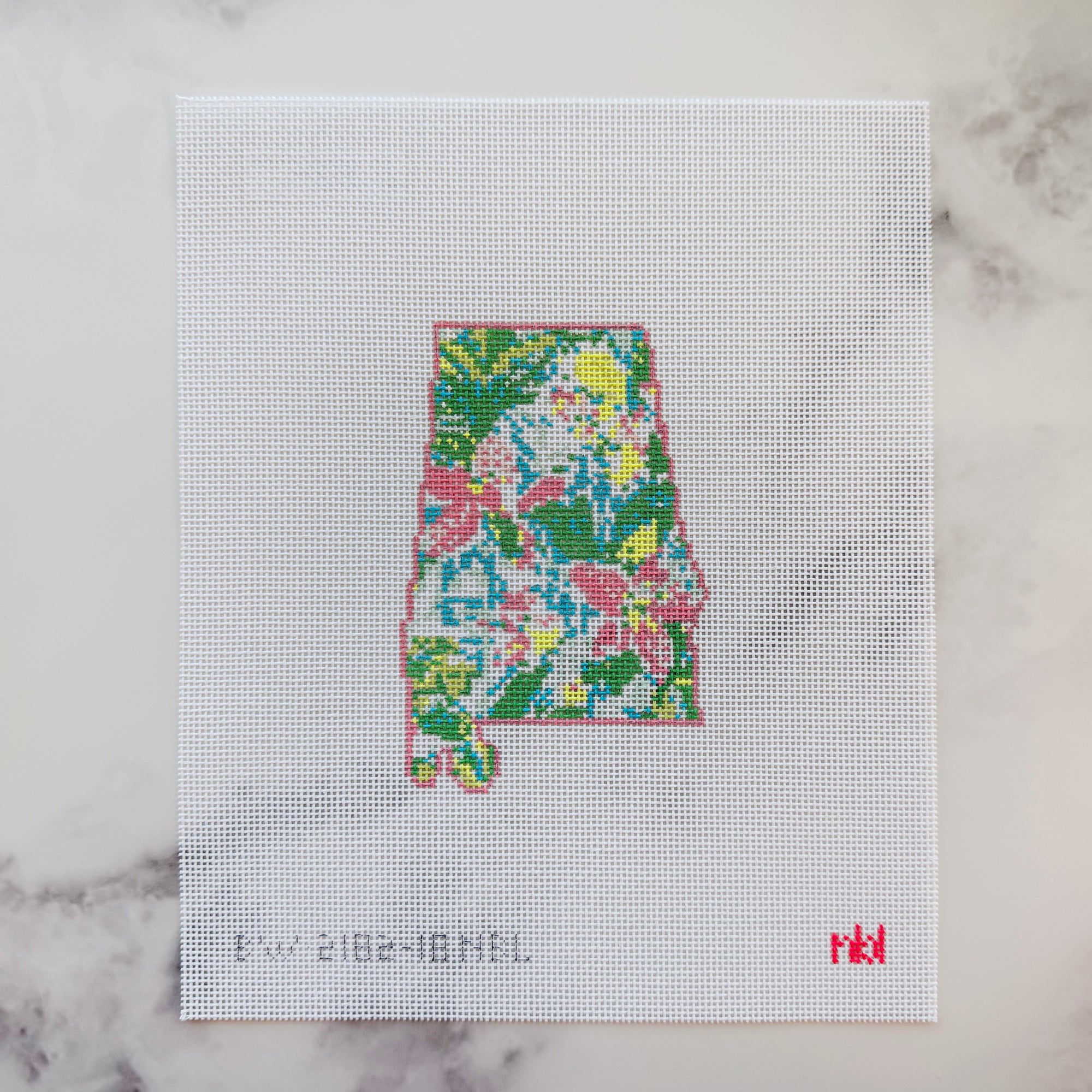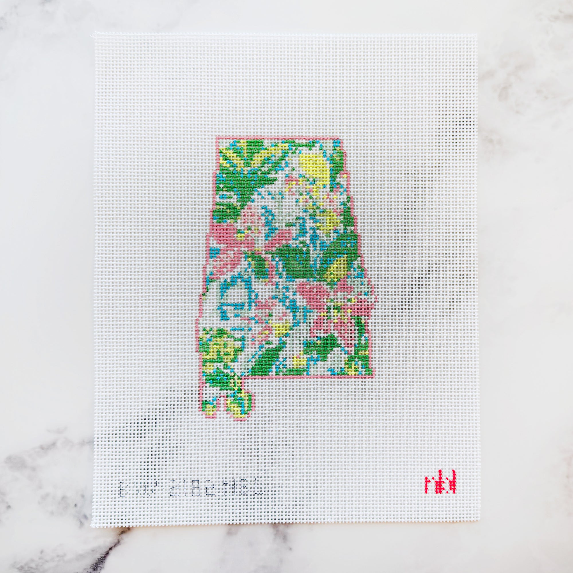Each kit comes with a hand-painted needlepoint canvas in the design you choose. The edges are sewn in bias tape to prevent fraying while you stitch.
